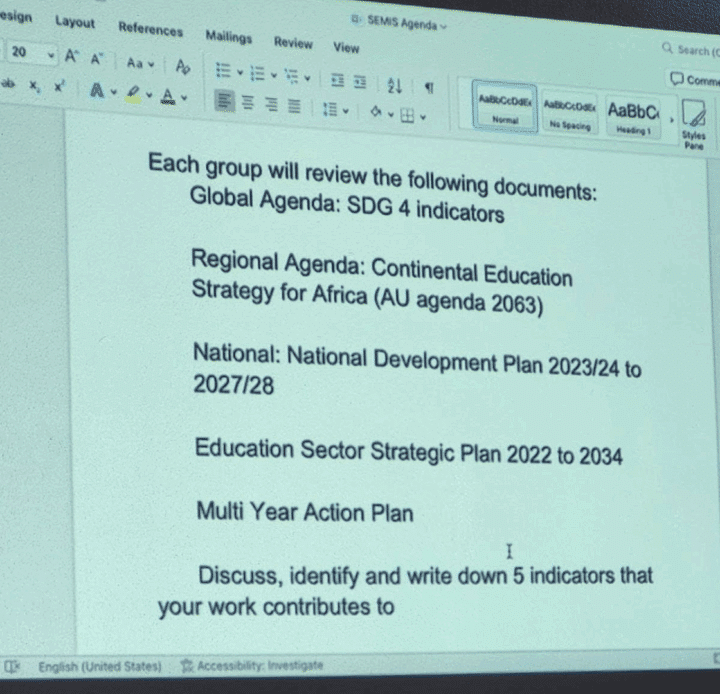 Hands-on workshops at both central and regional levels in Eswatini helped teams generate timely insights and apply them to planning, monitoring and reporting. A standout example was the training for Regional Inspectors of Schools, which demonstrated how data can directly support progress tracking against national and continental priorities: from Eswatini’s Education Sector Strategic Plan and National Development Plan to SDG4 and Continental Education Strategy for Africa (CESA) reporting.