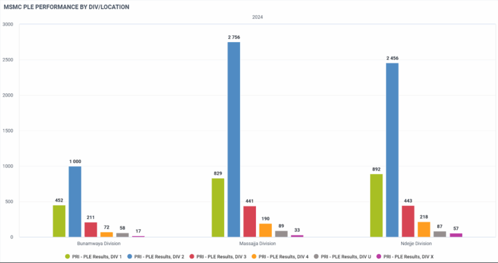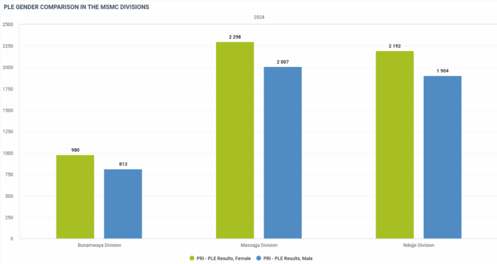 Previously, local analysis was limited because the UNEB portal could not disaggregate results by division. We could see the municipality’s score, but not the specific performance of Ndejje, Masajja, and Bunamwaya. However, with the integration of DHIS2’s data visualizer, the Education Department was able to filter data geographically. We can now compare academic outcomes and gender disparities across divisions instantly. The allows us to target resources where they are needed most, rather than applying a blanket solution. The visualizations below highlight these differences, identifying top-performing divisions and highlighting gaps in gender equity.